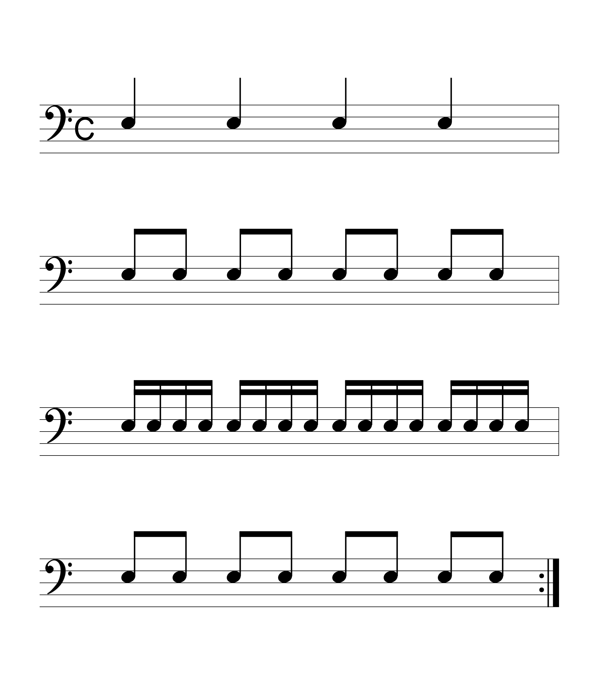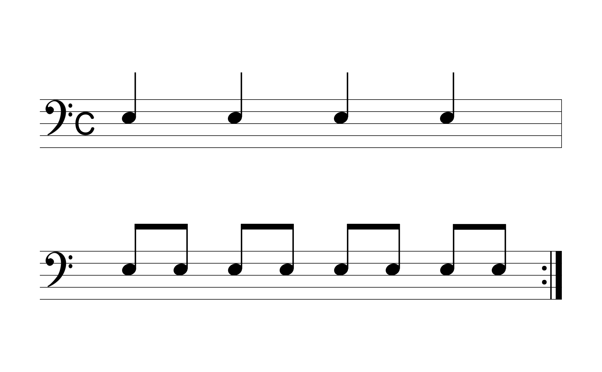 実際の練習メニューとしては、まずは4分音符と8分音符の繰り返しからスタートして、