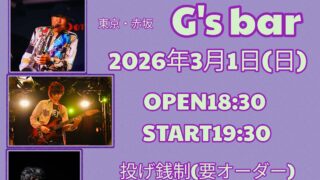 2026年4月9日(木)『SIDE MONS HIGH ARBOR』@東京・赤坂 G's bar Open 19:00 / Start 20:00投げ銭制 出演:山田翔一(Tb)横山拓也(Gt)キヒラアキト(Ba)高インボム(Dr) 『G’...